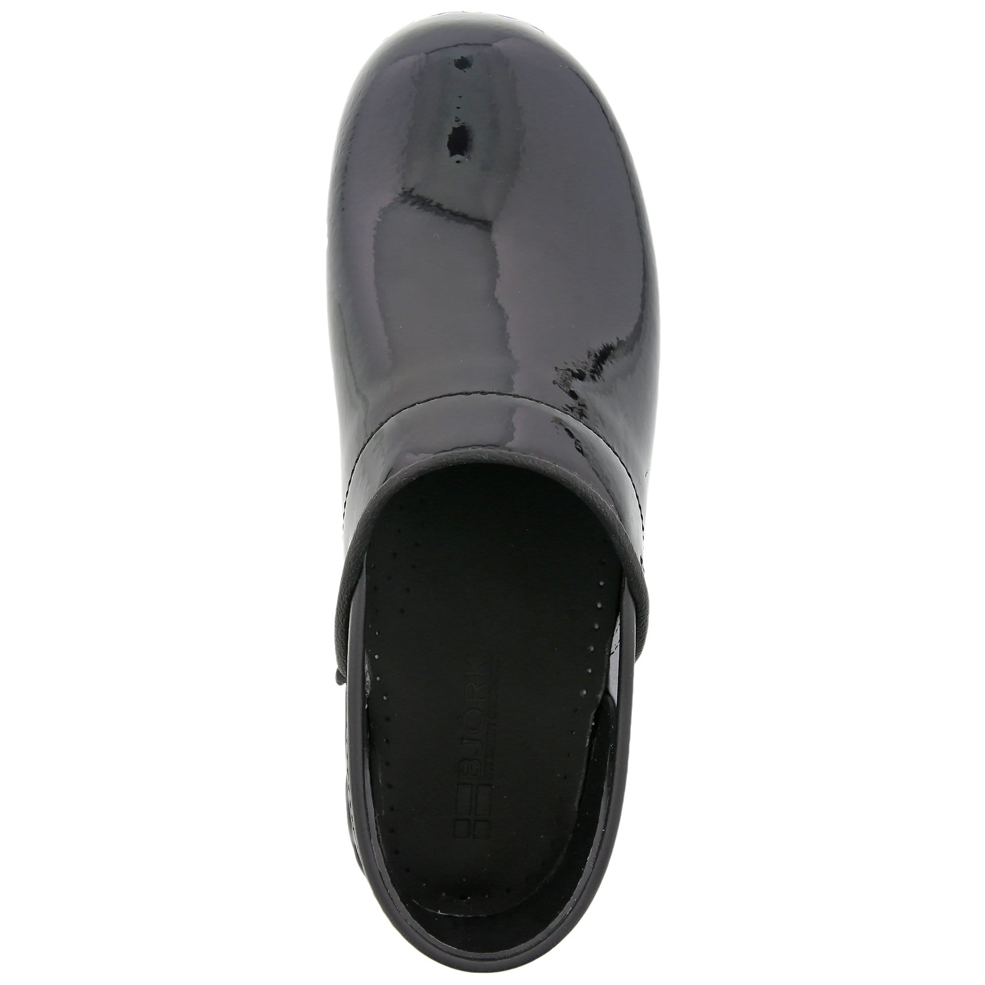 The PRO ELSA from BJORK Swedish Comfort is a classic yet functional clog, hand-made in Europe. It has a premium patent leather upper that gives it a high gloss finish. It delivers all day comfort, thanks to it's softer insole and arch support design.