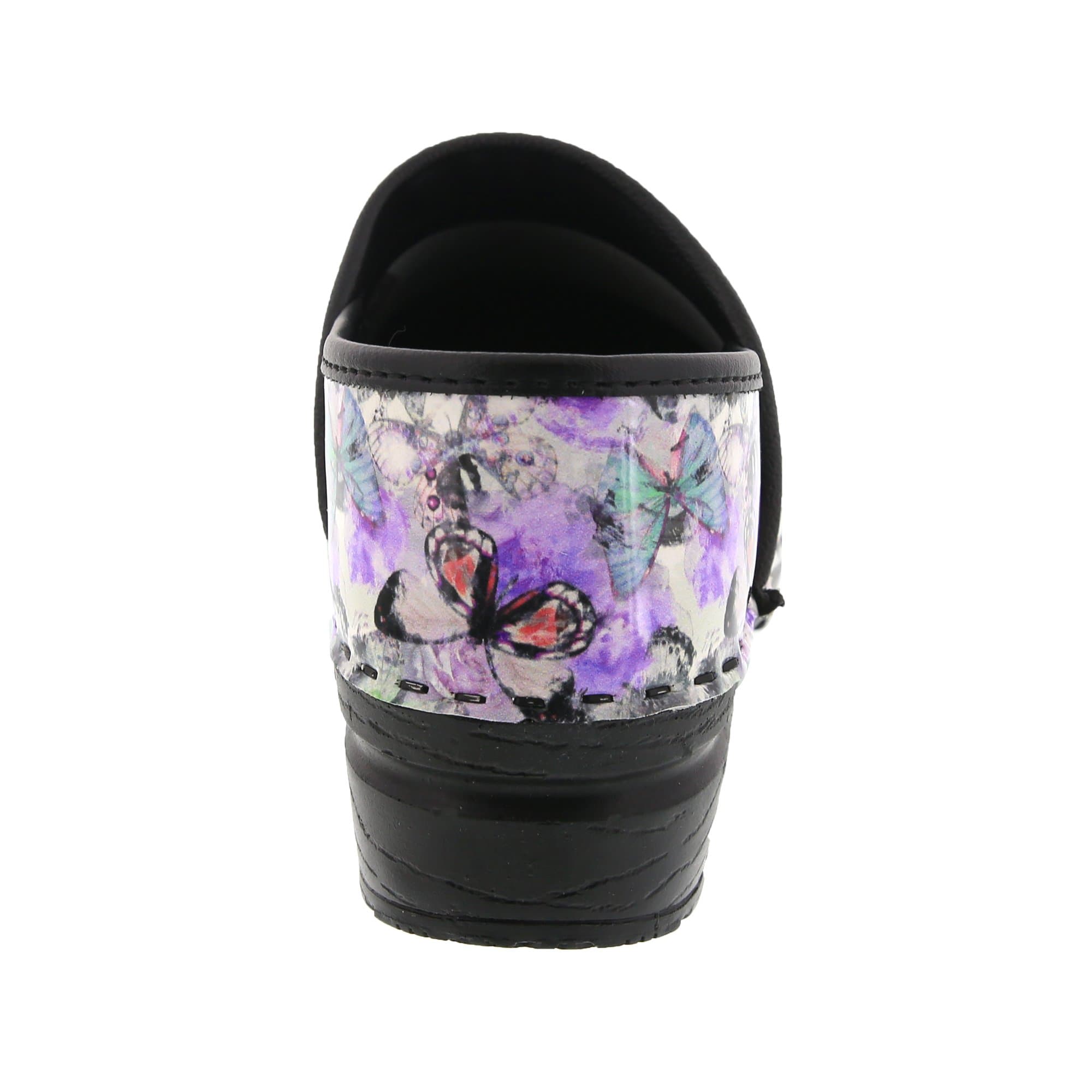 BJORK Professional Fjaril Butterfly leather clogs feature colorful butterflies on a light leather background. Guaranteed to complement your outfit. Made from genuine printed leather. The Professional clog is based on the classic yet functional Swedish clog silhouette, hand-made in Europe. It delivers all day comfort, thanks to it's softer insole and arch support design.