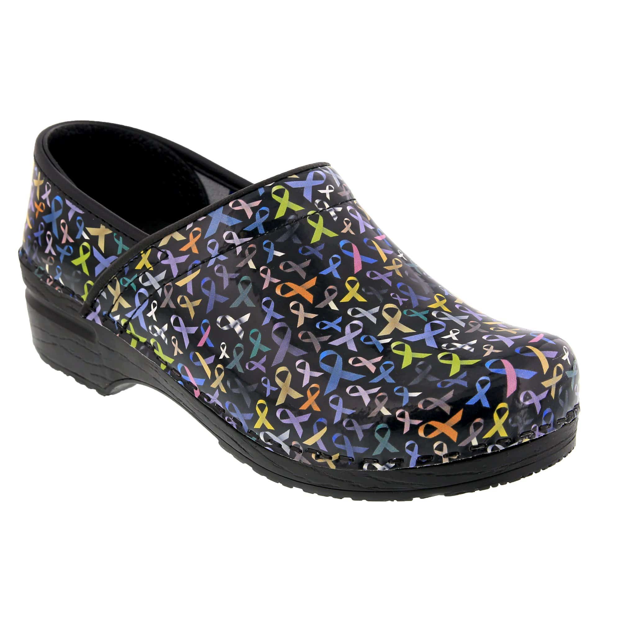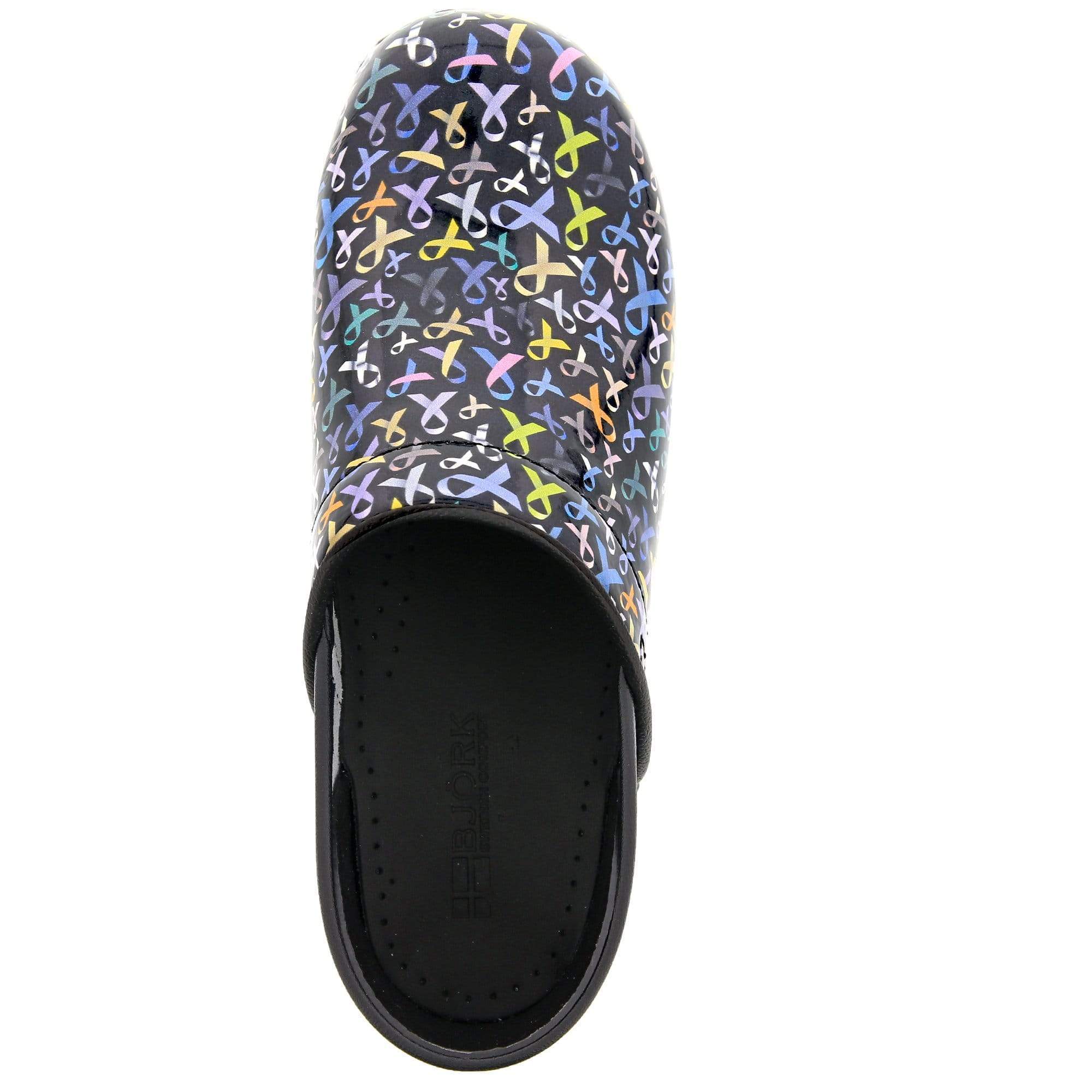 BJORK Professional Hope Ribbons leather clogs. Easy cleanable printed leather. The Professional clog is based on the classic yet functional Swedish clog silhouette, hand-made in Europe. It delivers all day comfort, thanks to it's softer insole and arch support design.