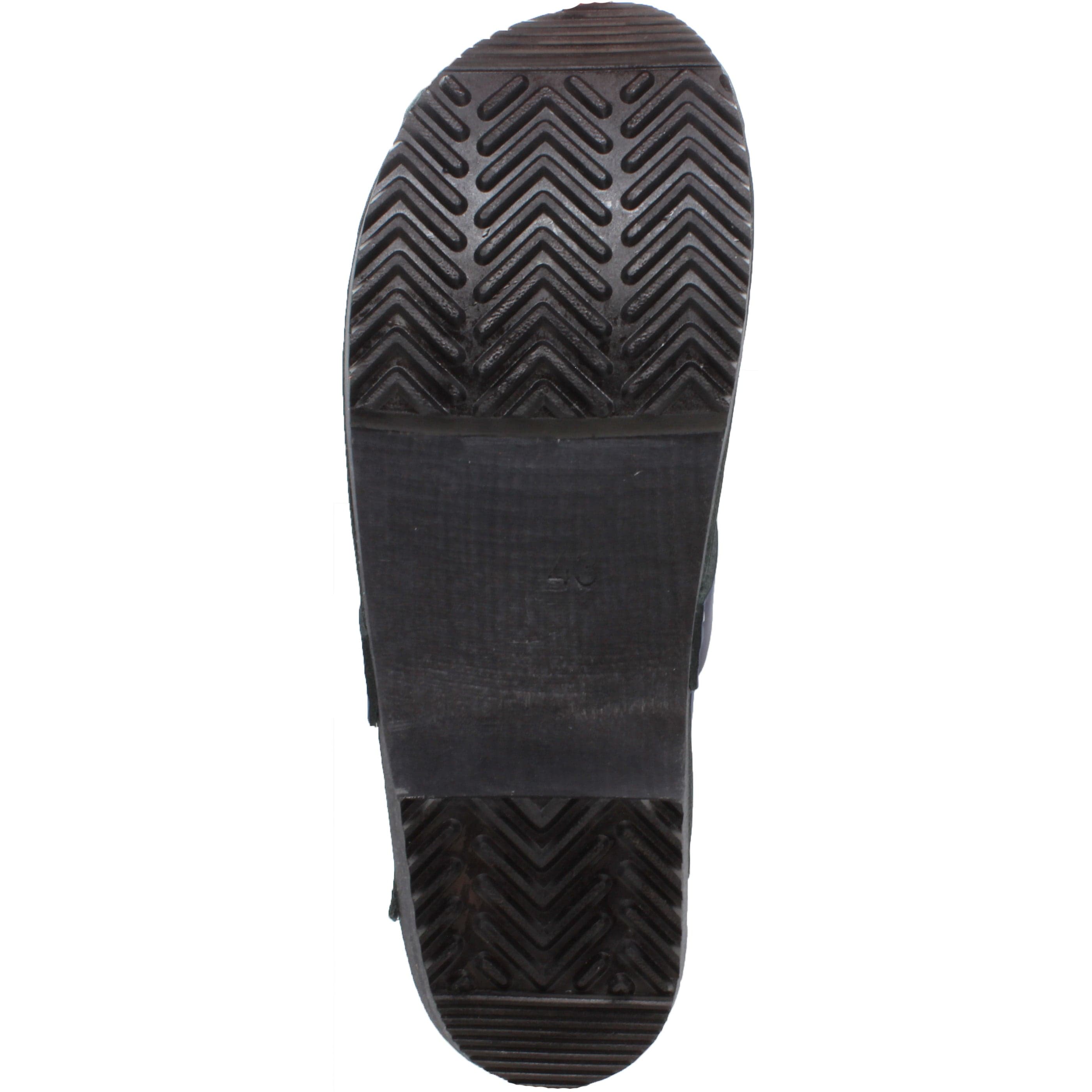 - Wood outsole with rocker bottom and PU tread to propel your foot forward