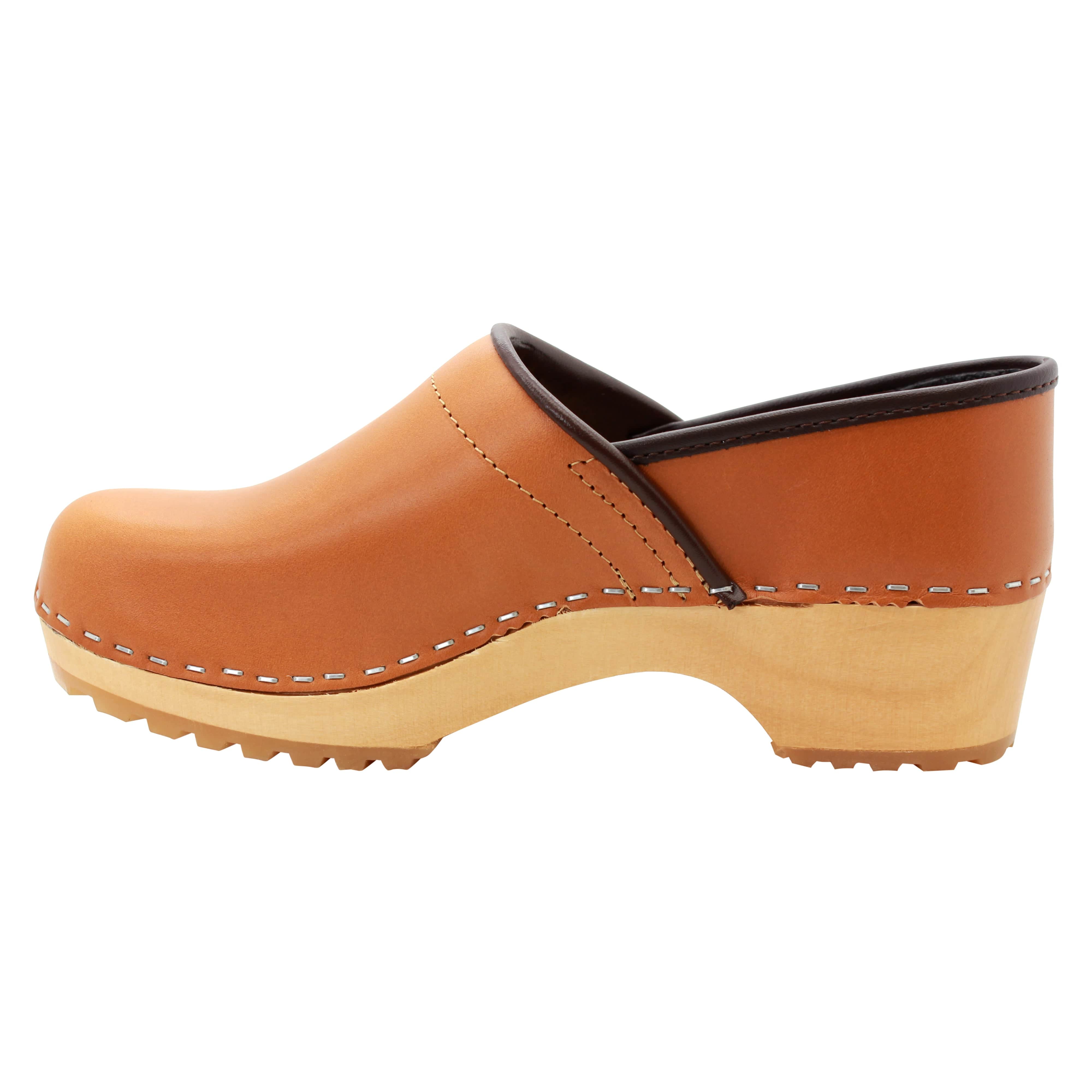 BJORK Tindra Wood Closed Back Grip Caramel Veg Tan Leather Clogs