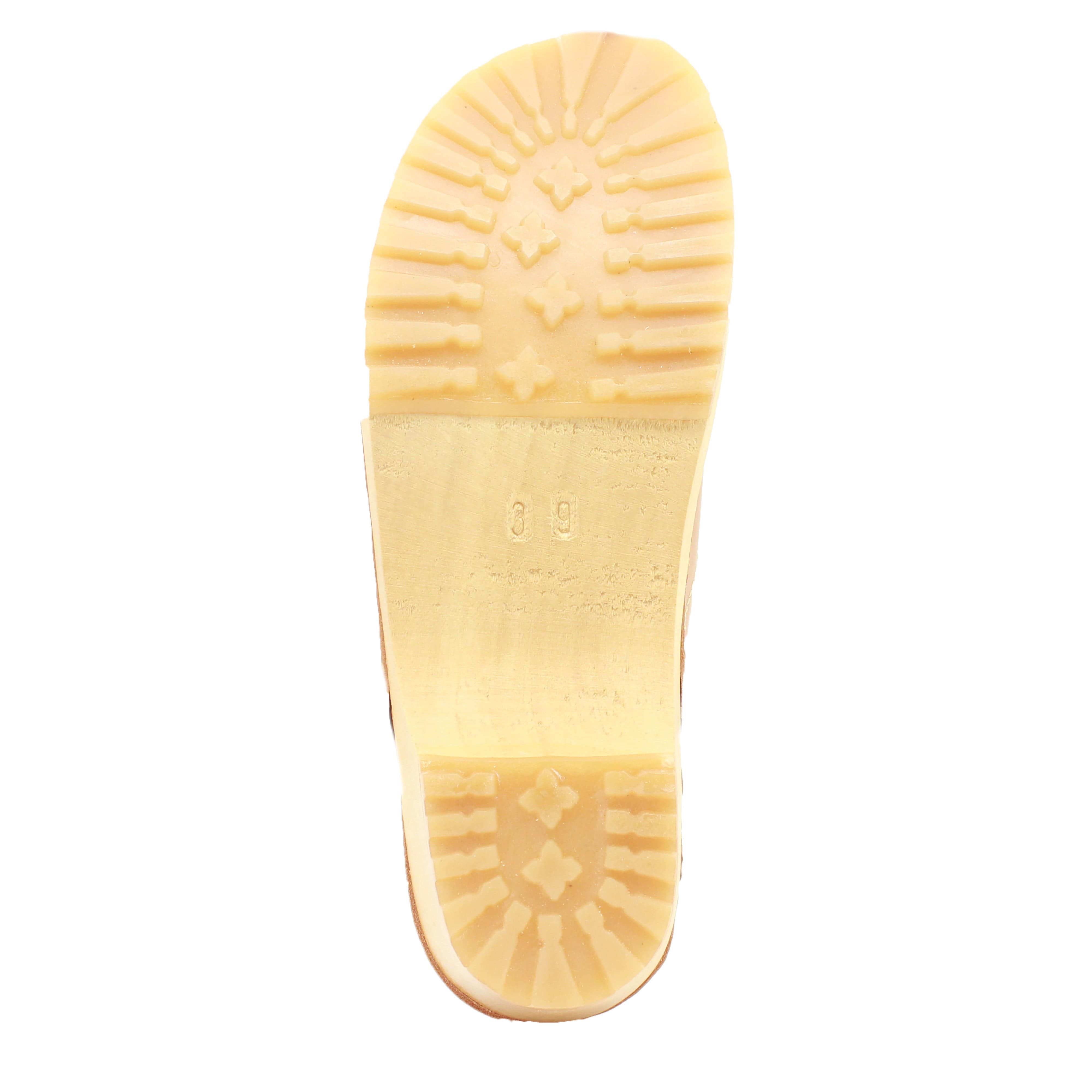 - Genuine Wood Outsole harvested from sustainable European forests, with PU tread to minimize slipping.