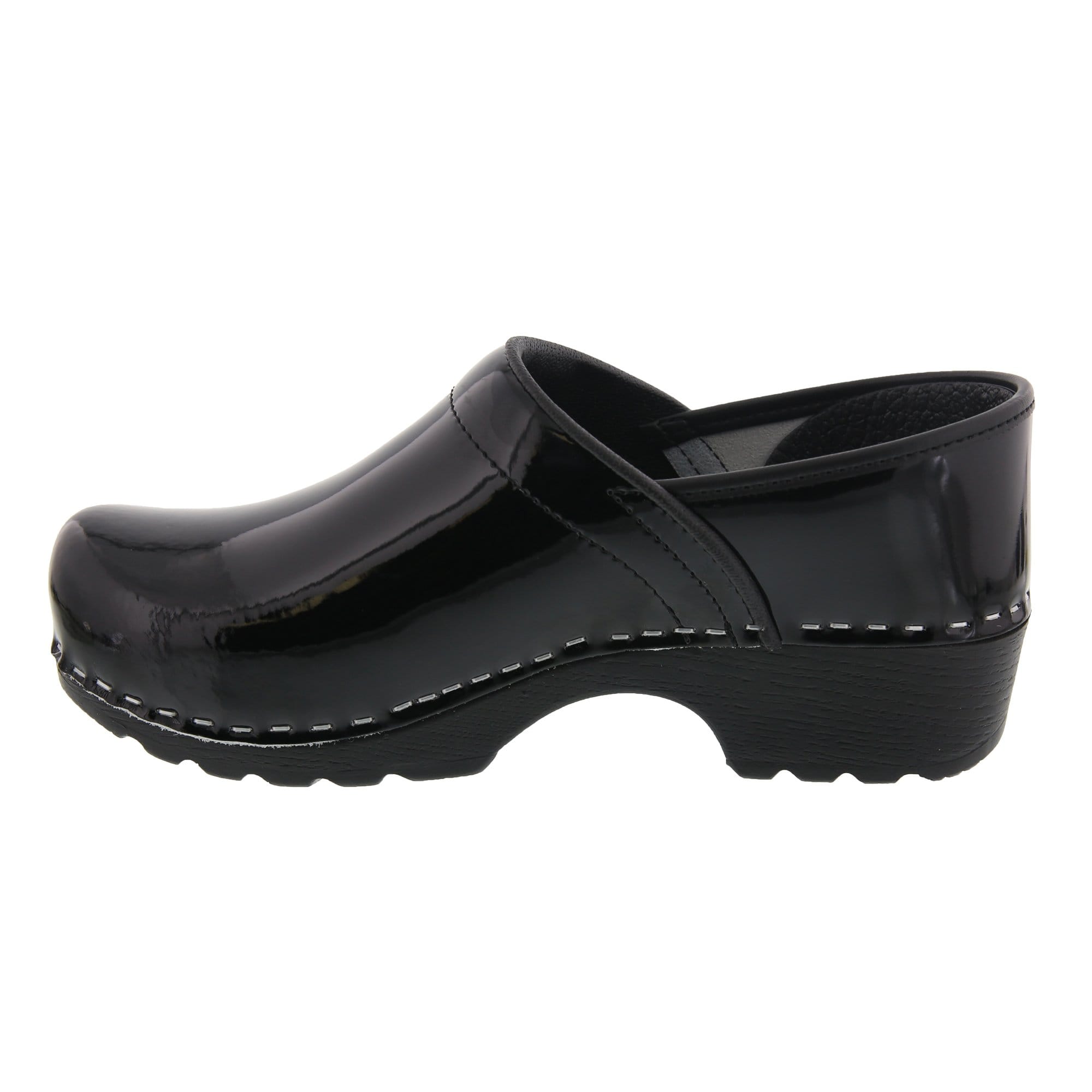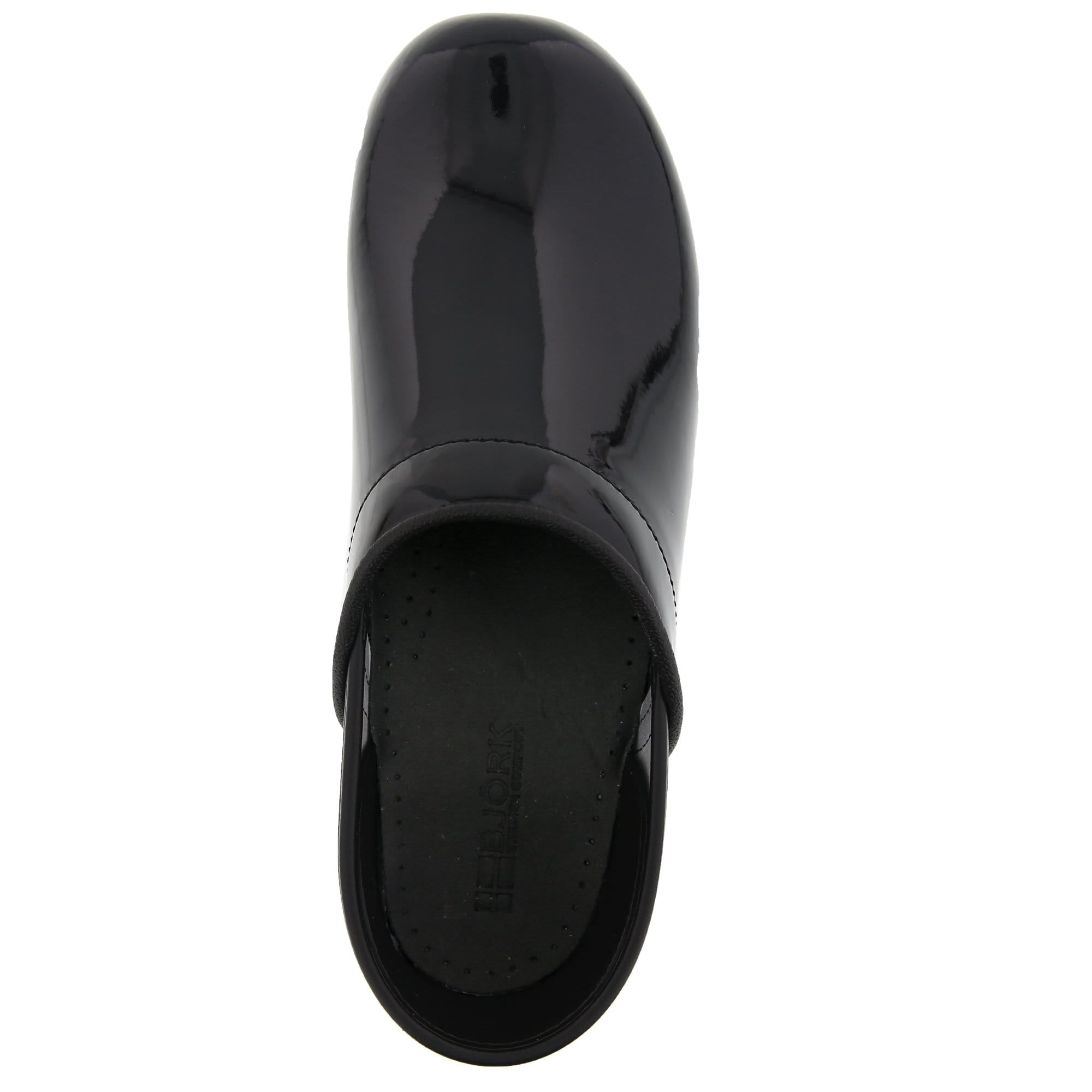 BJORK Women's Swedish Professional Black Patent Leather Clogs