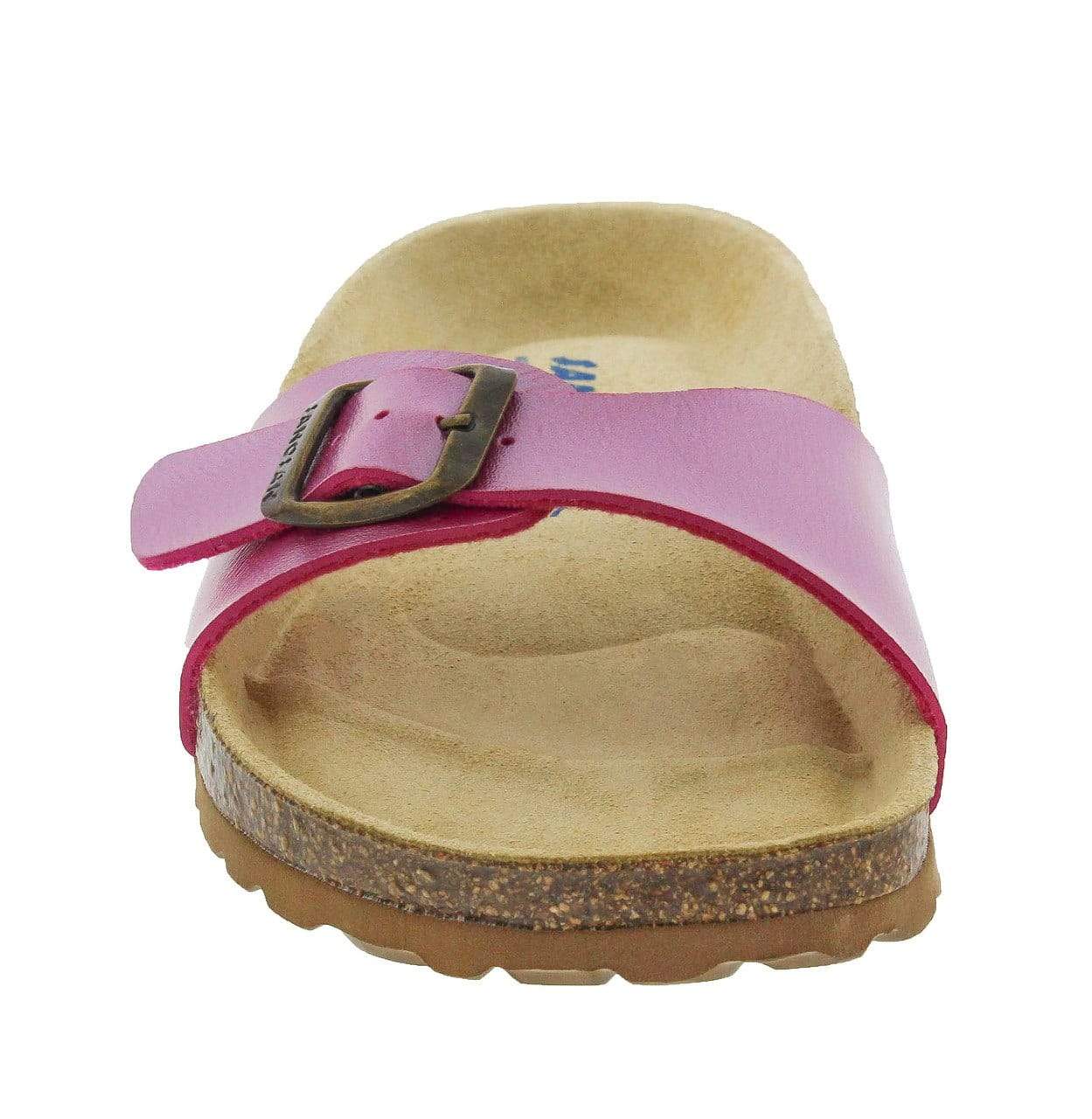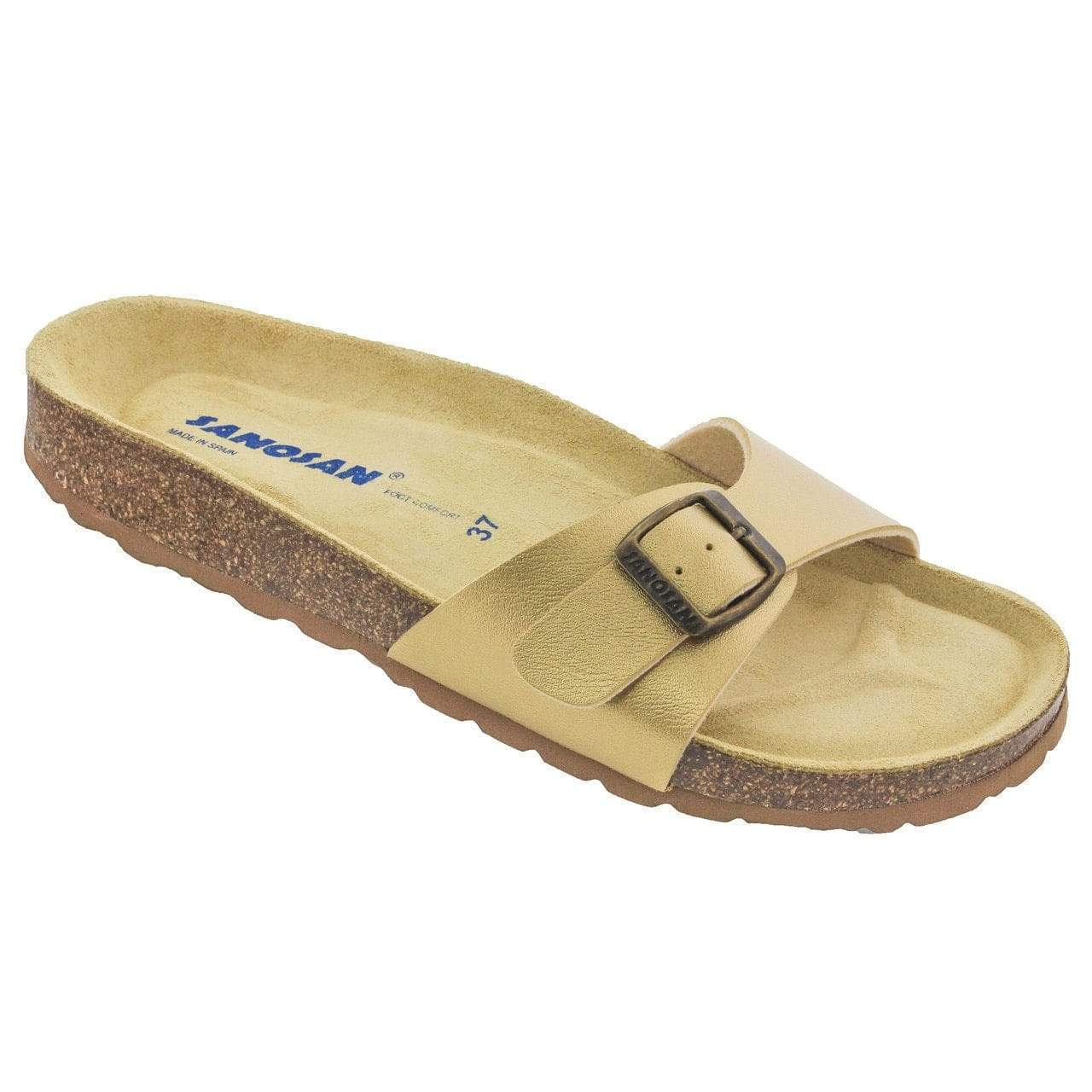 The Malaga, named after a coastal city in South of Spain. It is an elegant one strap sandal with adjustable buckle. Featuring a flexible and anatomically correct footbed that forms to your foot for all day comfort. Featured in Sanoflor durable and cleanable material. It has a metallic finish and is leather like. Featuring the Sietelunas™ Comfort patented footbed technology.