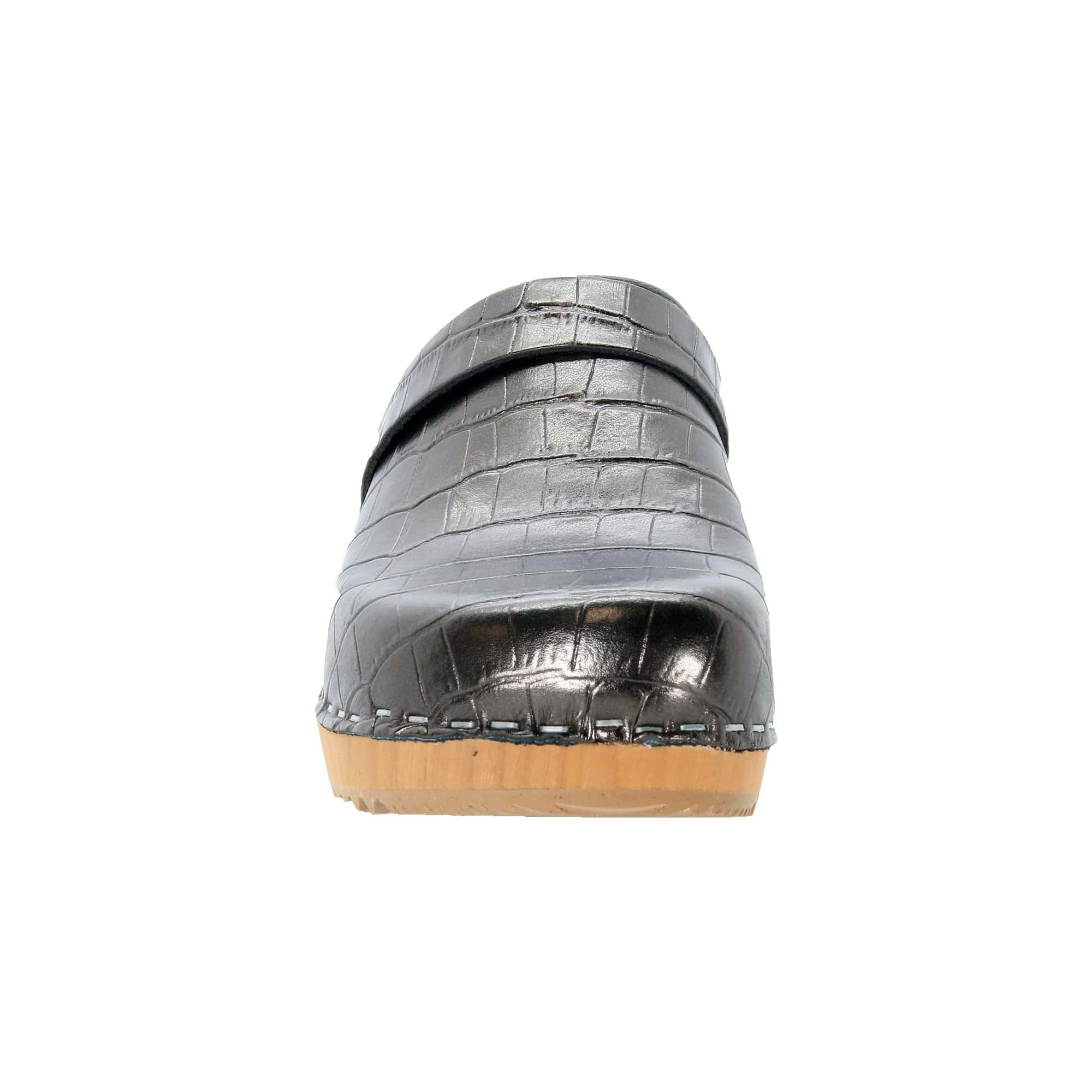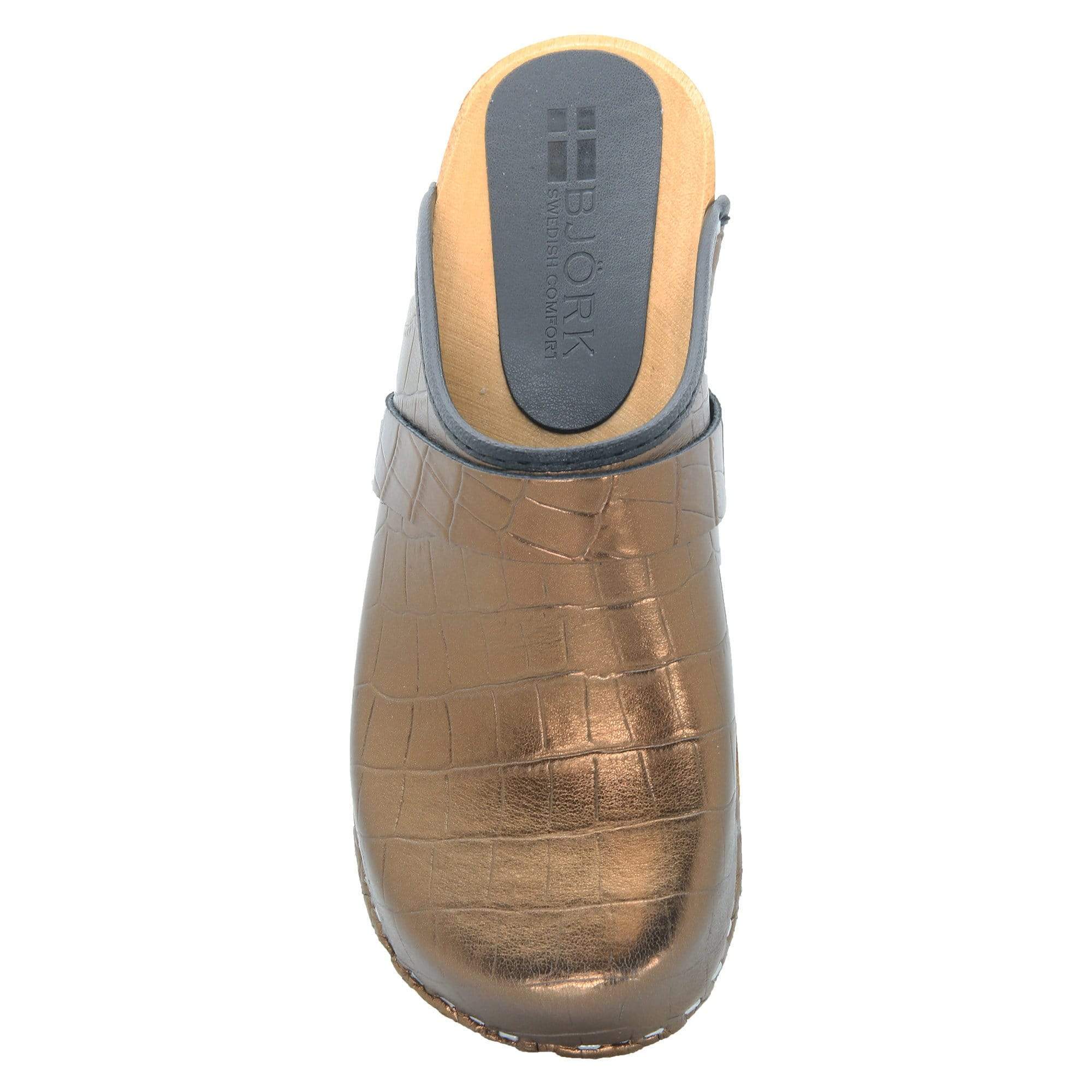 BJORK Maja Wood Open Back Croco Print Leather Clogs