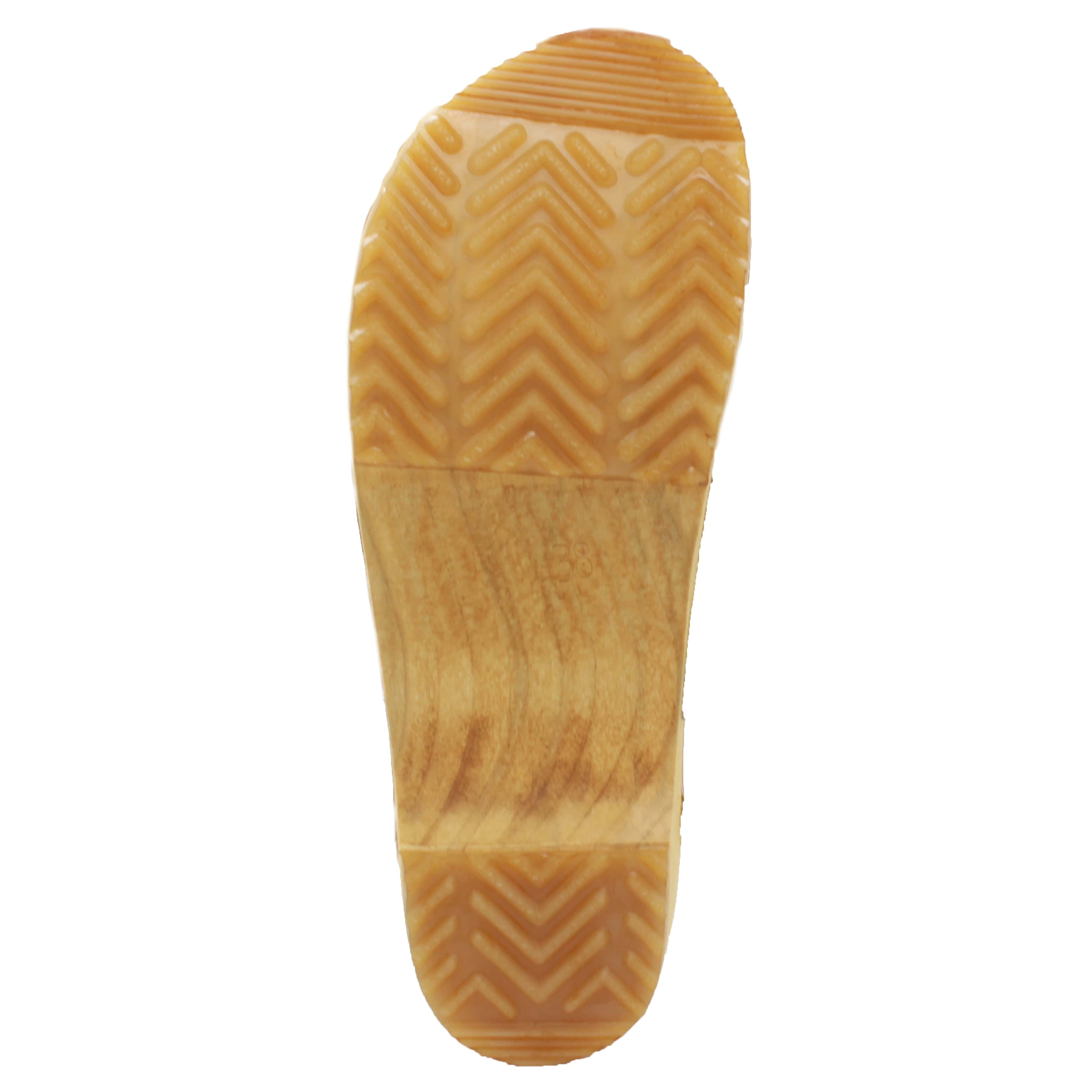 - Wood outsole with PU tread