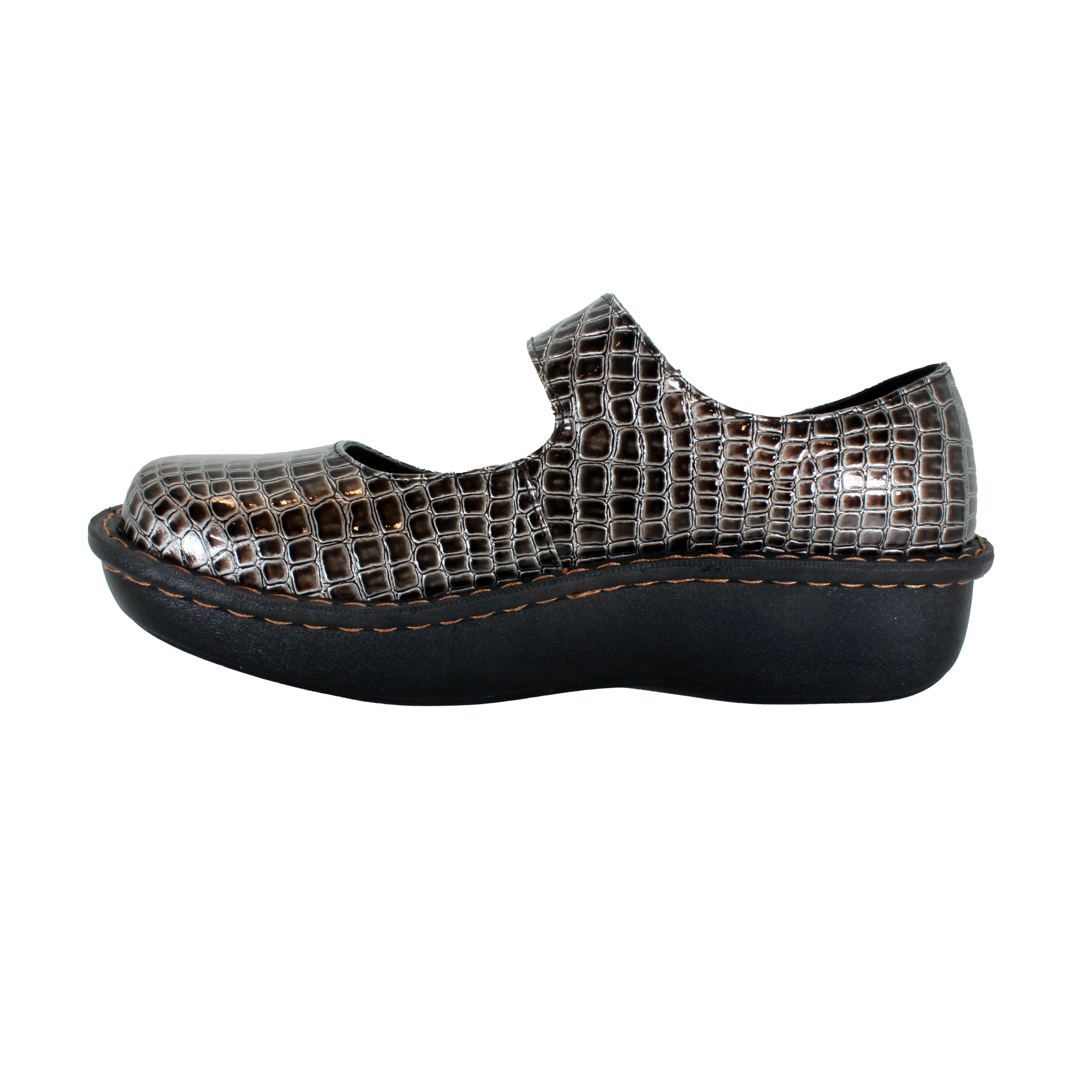Sanosan Julia Comfort Mary-Jane Clogs in Pewter Croco patent